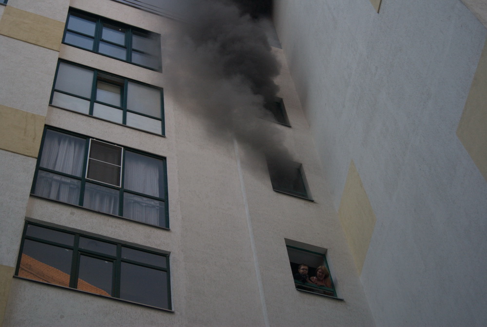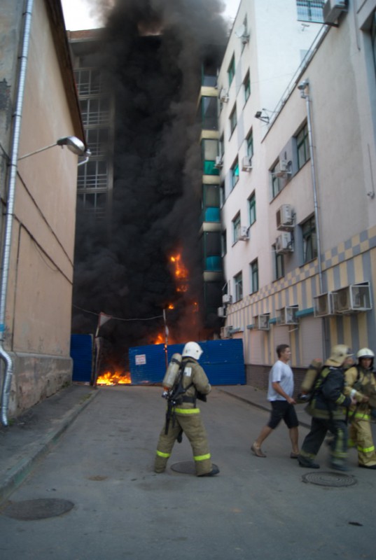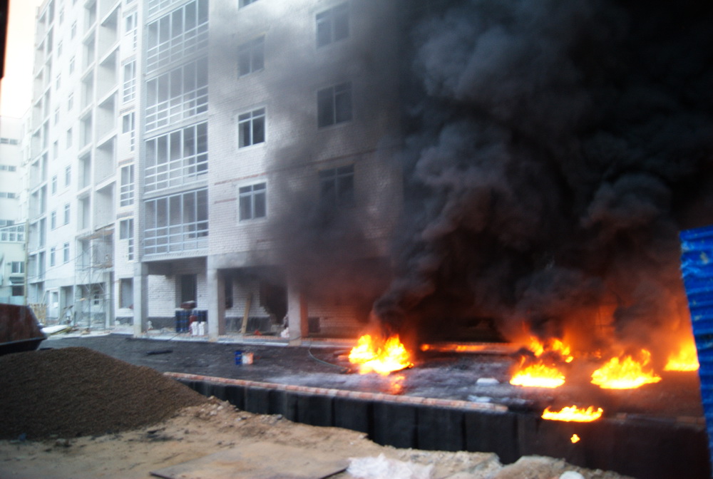 Горящий утеплитель падал вниз и затруднял доступ к зданию