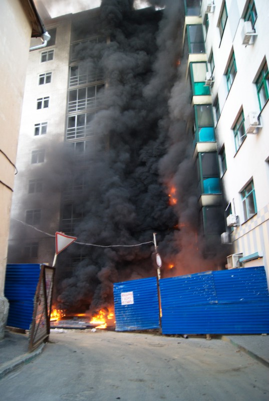 Ликвидации пожара мешали неправильно припаркованные машины и бетонные блоки