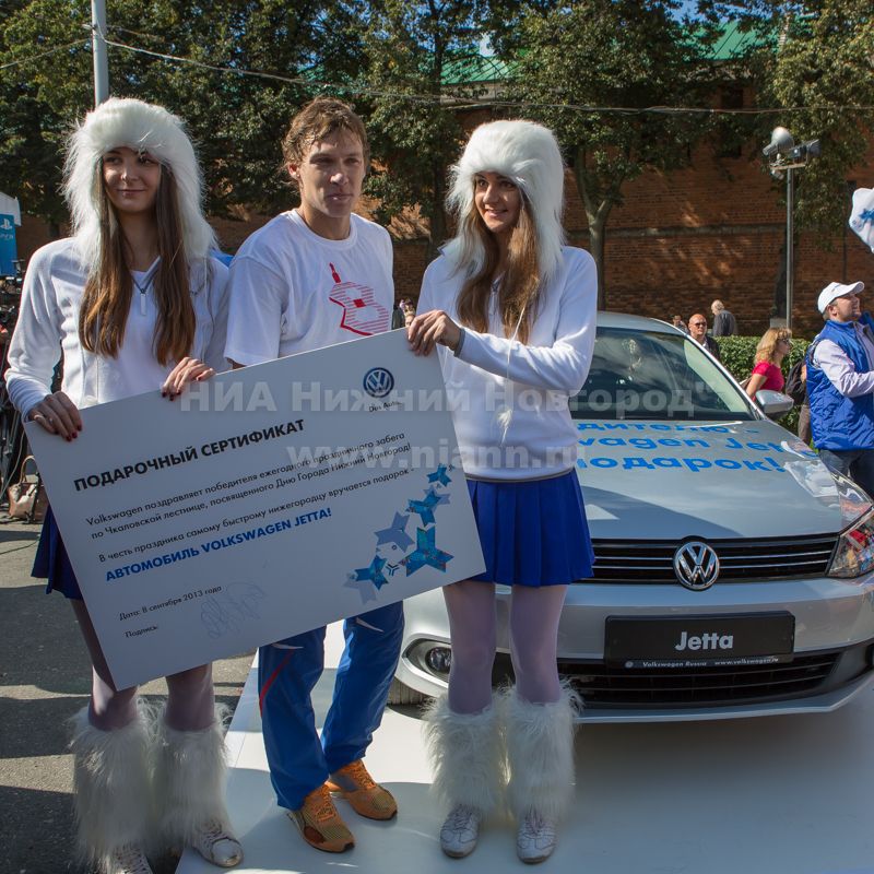 Победитель забега по 400 ступенькам Чкаловской лестницы легкоатлет Николай Бурда, в качестве приза он получил автомобиль Volkswagen