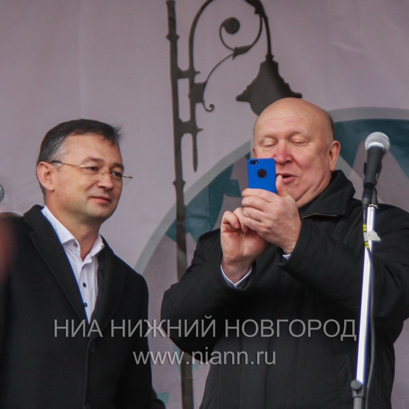 Губернатор Нижегородской области Валерий Шанцев, глава Нижнего Новгорода Олег Сорокин и глава администрации Нижнего Новгорода Олег Кондрашов на Рождественской прогулке