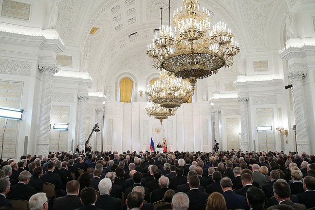 Президент России Владимир Путин 12 декабря обратился к Федеральному Собранию с ежегодным посланием. На церемонии, состоявшейся в Георгиевском зале Большого Кремлевского дворца, присутствовали члены Совета Федерации, депутаты Государственной Думы, члены Правительства, руководители Конституционного, Верховного и Арбитражного судов, губернаторский корпус, председатели законодательных собраний субъектов Федерации, главы традиционных конфессий, общественные деятели, в том числе главы общественных палат регионов, руководители крупнейших средств массовой информации.