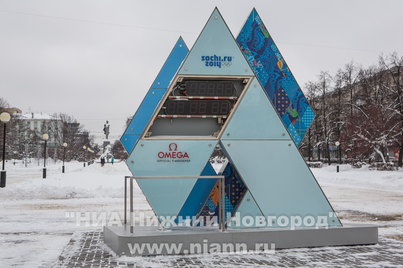 Напомним, что уникальные часы, которые показывают дни, часы и минуты, оставшиеся до зимней Олимпиады в Сочи-2104, были установлены на площади Горького в Нижнем Новгороде 7 февраля 2013 года. Четырехметровая конструкция весит около двух тонн, снабжена жидкокристаллическим дисплеем и украшена эмблемой Олимпийских игр.