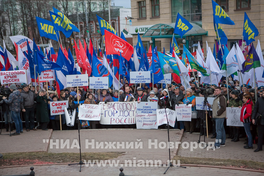 Общегородской митинг в поддержку итогов референдума в Крыму проходит в Нижнем Новгороде 18 марта.