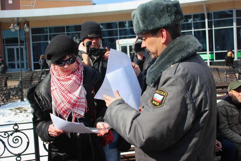 Полиция выдает предупреждение организатору митинга о недопустимости нарушения общественного порядка