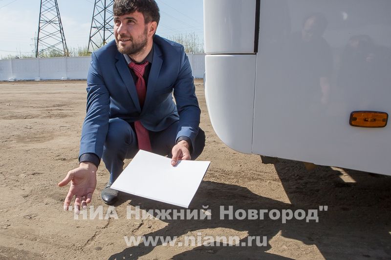 Представитель завода Нефаз демонстрирует экологичность нового автобуса