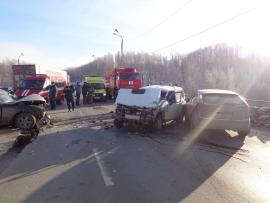 По предварительным данным, лобовое столкновение автомобилей произошло около часа дня 22 января. Известно, что автомобили Ford, Нива и Волга получили серьезные механические повреждения. Также известно об одном пострадавшем в ДТП. Человек доставлен в больницу. Движение организовано по одной полосе в верхнюю часть города и одной – в нижнюю.