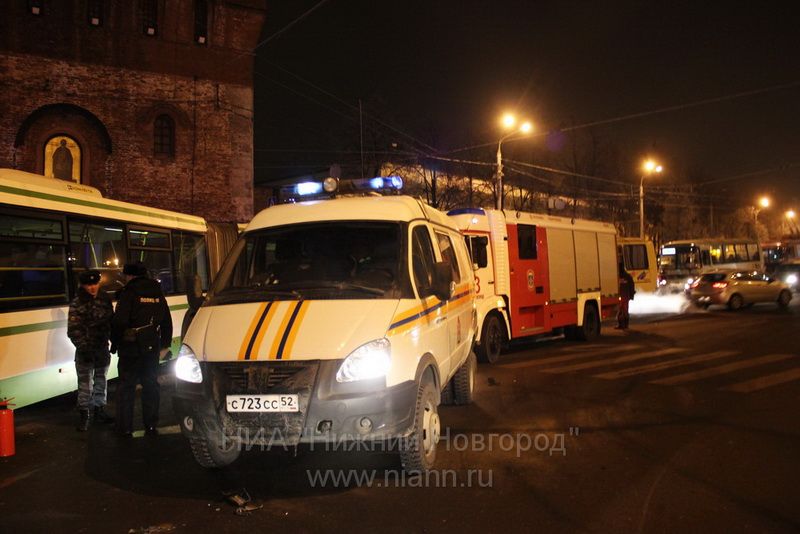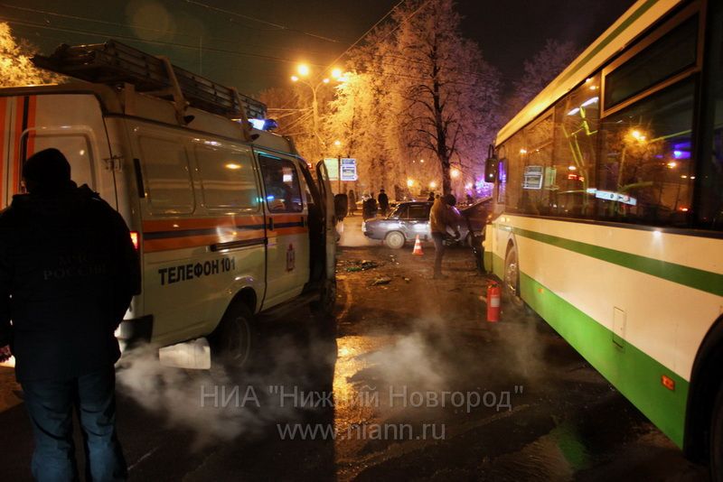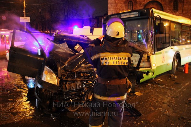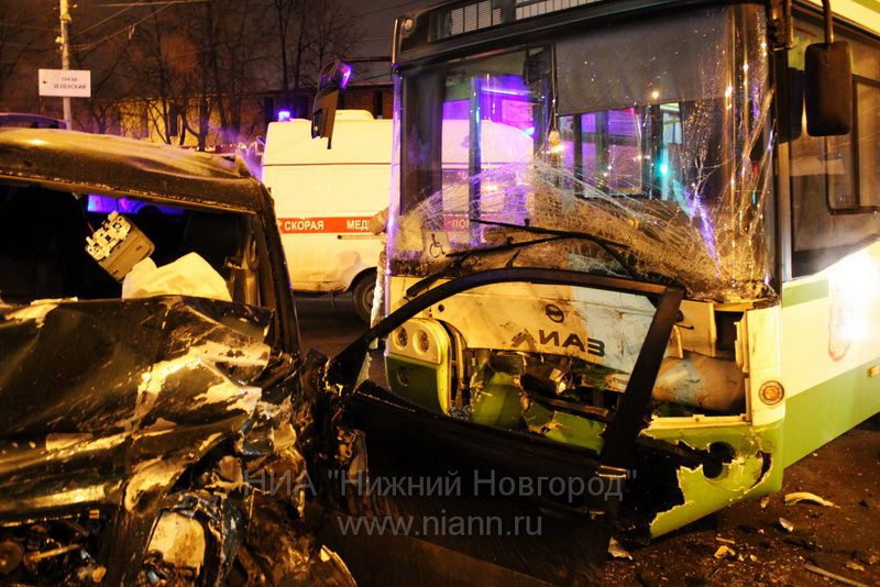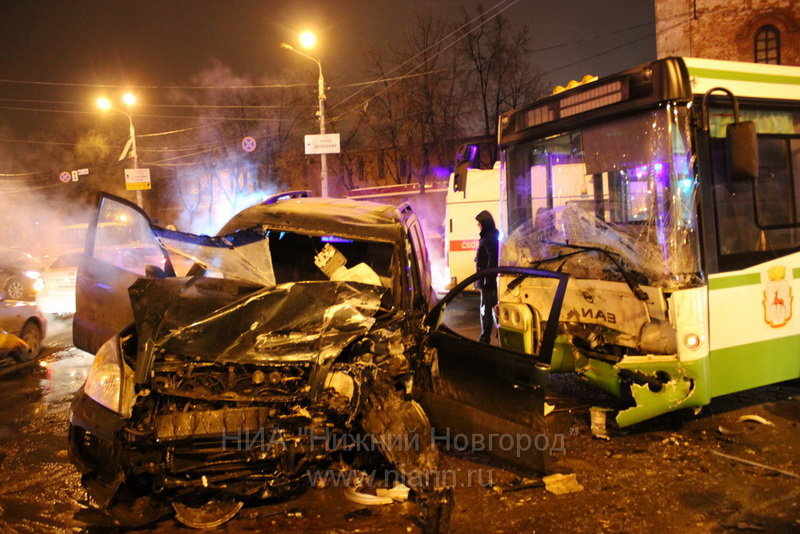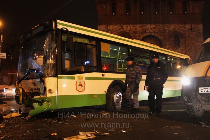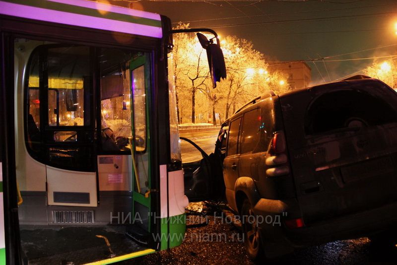 ДТП с участием пассажирского автобуса-гармошки и автомобиля Toyota Land Cruiser на площади Минина в Нижнем Новгороде
