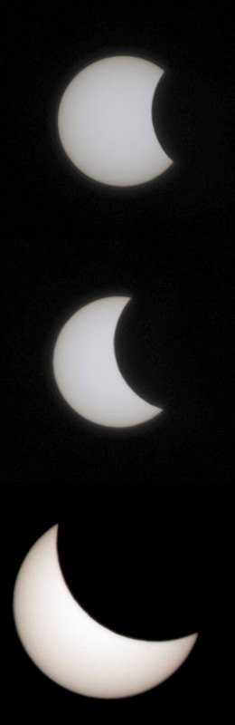 Согласно сообщению, частичное солнечное затмение началось в 12:26 и продлится до 14:36. На 13:27 пришлась его максимальная фаза - 0,6.