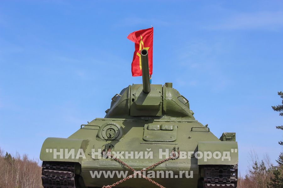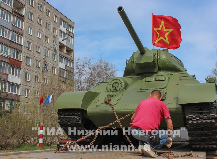 Отреставрированный боевой танк Т-34 установлен на территории Сормовского района Нижнего Новгорода