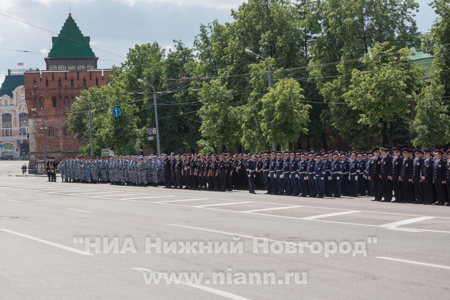 Смотр личного состава Нижегородского гарнизона полиции, привлекаемого к обеспечению охраны общественного порядка в Нижнем Новгороде