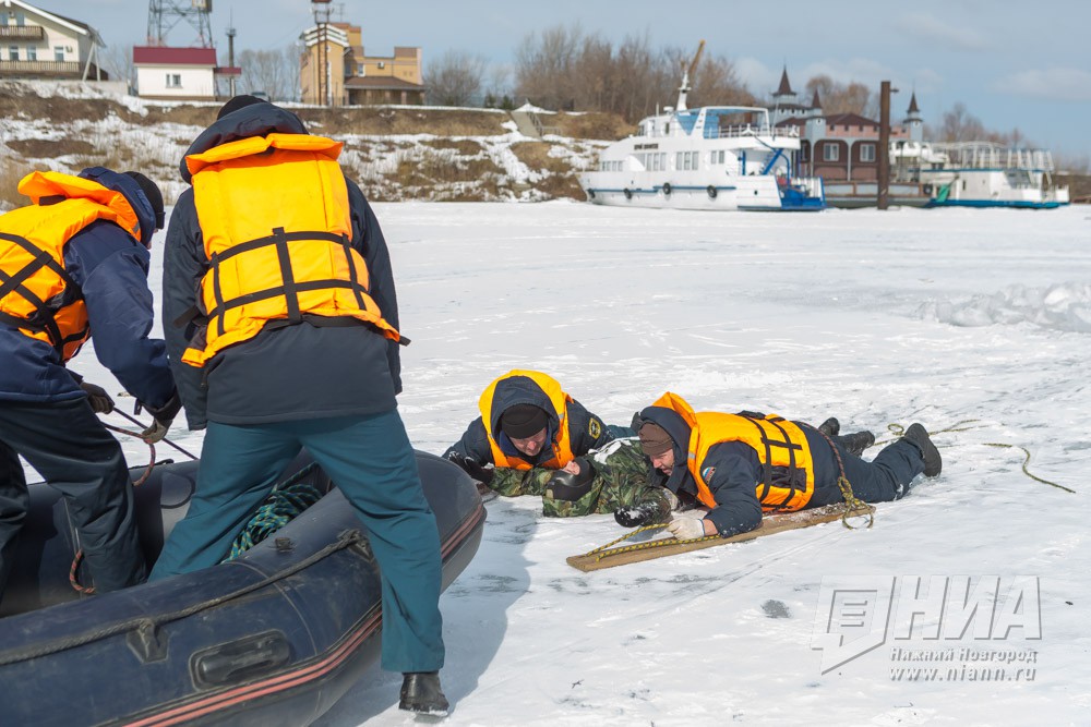 Тактико-специальные учения с аварийно-спасательным отрядом Нижегородской области спасателей в преддверии паводка. В акватории реки Волга отрабатывались четыре различных вводных. В том числе,