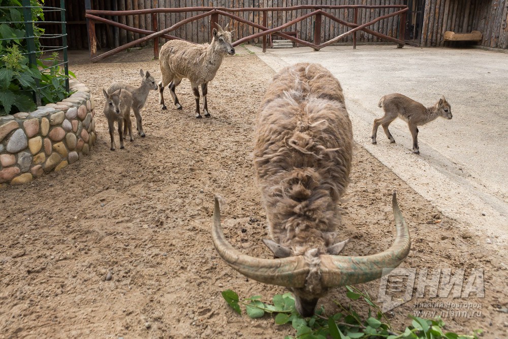 Сразу трое детенышей родилось в семействе голубых баранов в нижегородском зоопарке Лимпопо в июне 2016 года