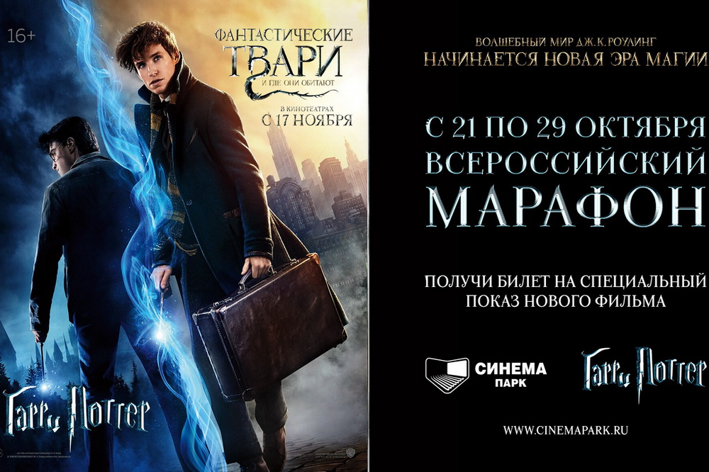 "В рамках марафона на огромные экраны "Синема Парка" вернутся все части любимой киносаги "Гарри Поттер", кроме того, зрителей ожидает сюрприз – премьера нового приключенческого блокбастера "Фантастические твари и где они обитают", которая состоится на день раньше национального проката", - говорится в аннотации к киномарафону.