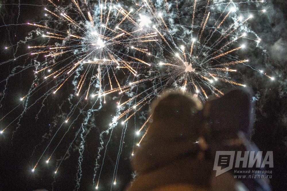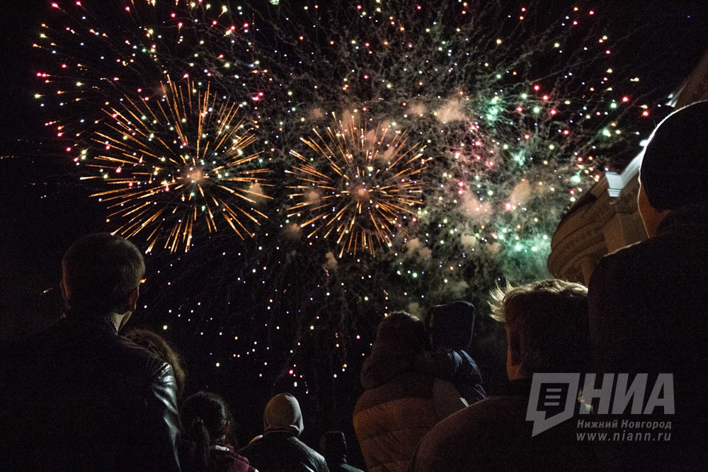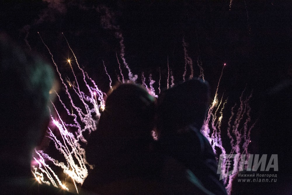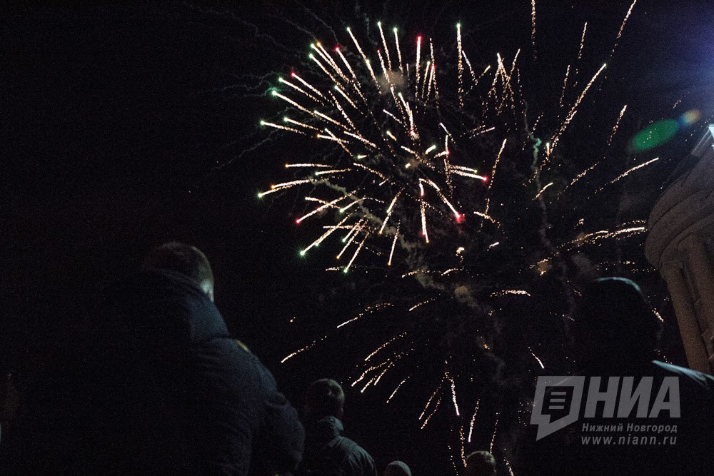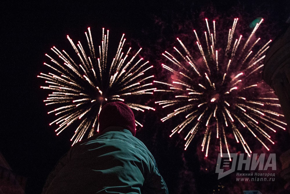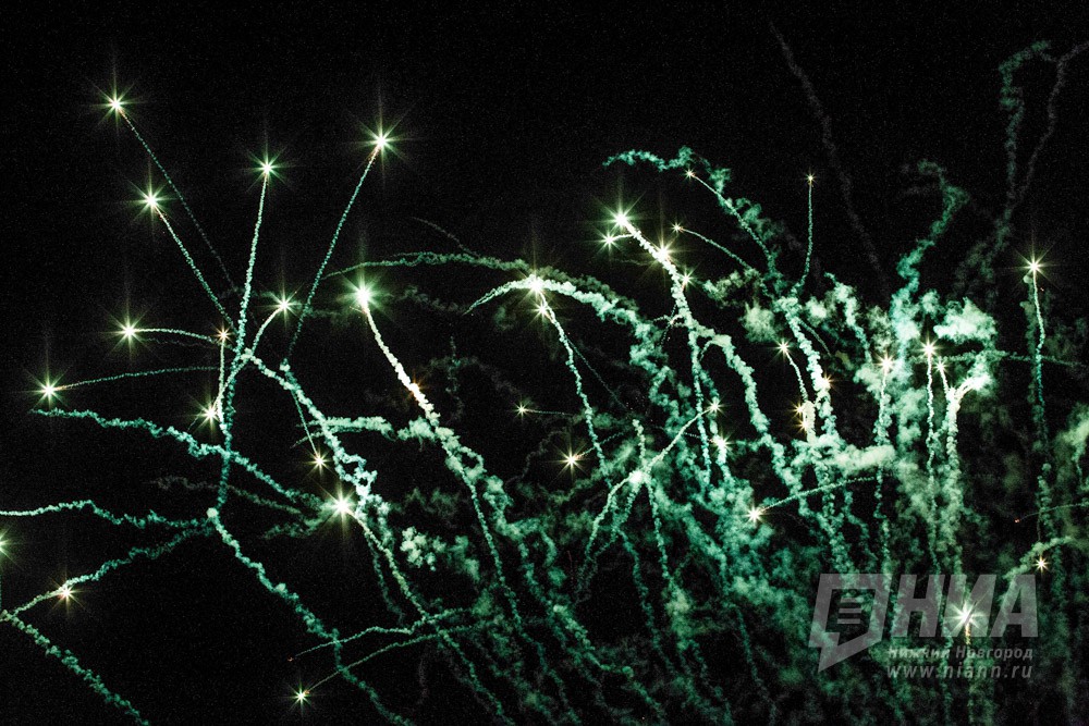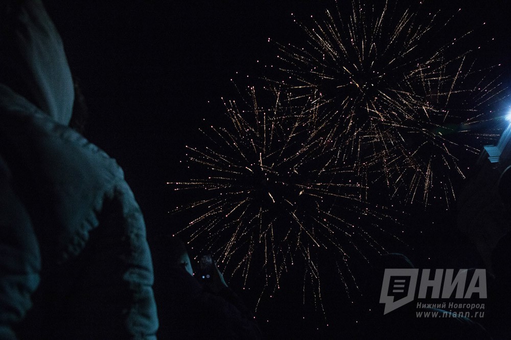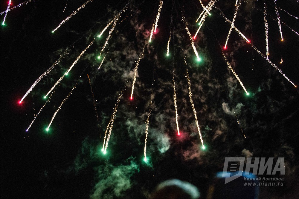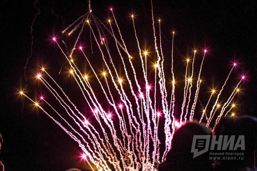 Праздничный фейерверк в День Победы в Нижнем Новгороде
