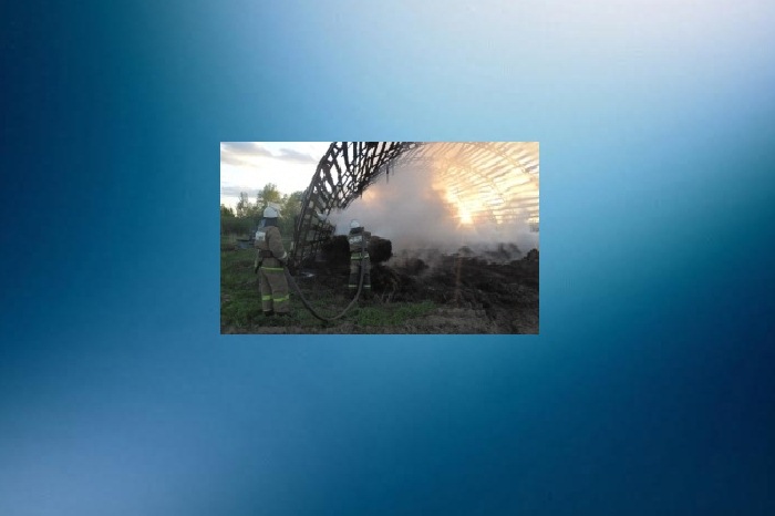 В результате пожара сгорела кровля сенохранилища и сено на общей площади 400 кв. метров. Предполагается, что причиной пожара стало короткое замыкание электропроводки.