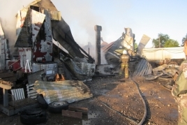 В результате пожара сгорел гараж на площади 300 кв.метров, а также стоящие там 14 единиц техники: пять легковых автомобилей, два грузовых автомобиля, два трактора, два автобуса, два мотоцикла и один гидроцикл.