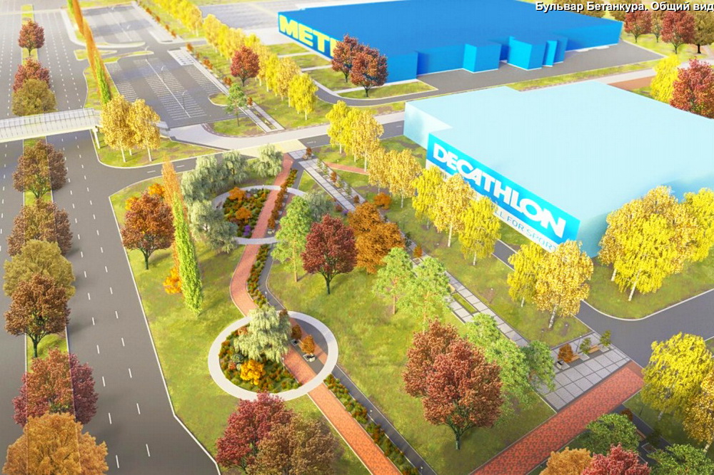 В рамках готового проекта подрядчик предлагает комплексное обустройство бульвара по периметру территории, с созданием велодорожек, рассредоточенных зон кратковременного отдыха. В дополнение к бульвару даются рекомендации по обустройству мостов и подходы к ним. В качестве покрытия пешеходных зон предполагается использовать плитку и брусчатку различных размеров и цветов, а также асфальтированные велодорожки. Во всех прогулочных зонах и путях движения пешеходов и велосипедистов предусмотрена система наружного освещения со светильниками с улучшенной оптикой.