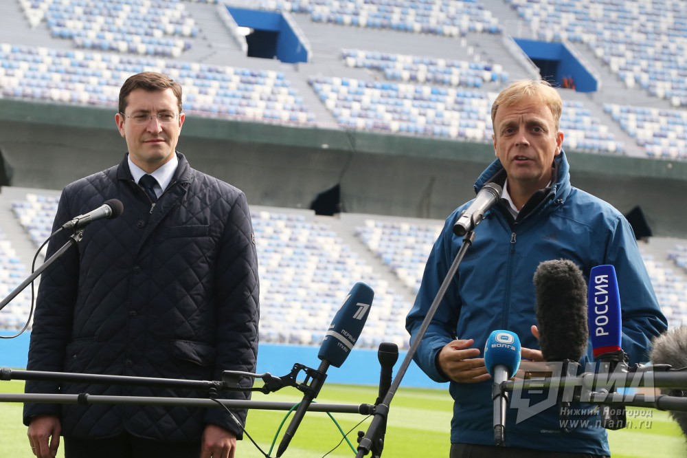 врио губернатора Нижегородской области Глеб Никитин и директор департамента ФИФА по проведению соревнований и мероприятий Колин Смит