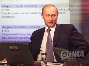Владислав Бородулин (Газета.Ru): Владимир Владимирович, учитывая такую необычную форму, журналисты ни одного из изданий не зададут 15 тысяч вопросов, а читатели наши могут это сделать. А Вы не скажите, каковы Ваши отношения с Интернетом, пользуетесь ли Вы этим видом связи или нет?