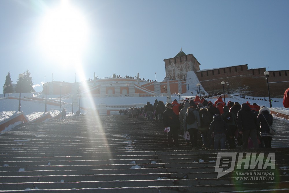 Рекорд России установили нижегородские мужчины на Чкаловской лестнице 8 марта
