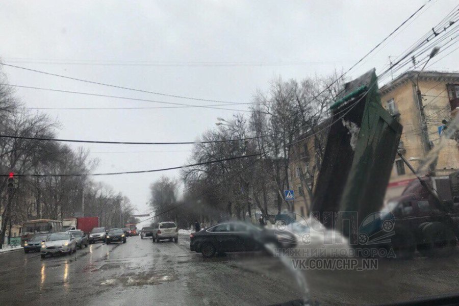 Грузовик КамАЗ оборвал провода на ул. Ванеева в Нижнем Новгороде около оперного театра 15 марта 2018 года. Об этом сообщают пользователи соцсетей.