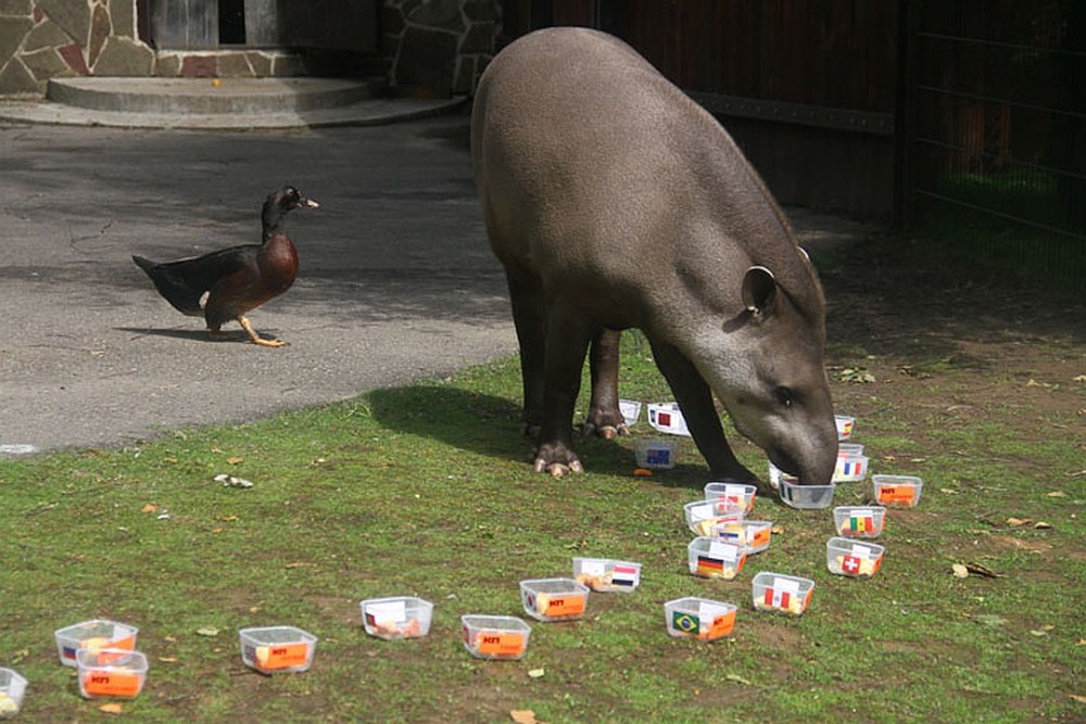 Напомним, использование представителей фауны в прогнозах исходов футбольных матчей получило широкое распространение после осьминога Пауля из немецкого океанариума. Для получения предсказания в большой аквариум, где жил осьминог, опускали две кормушки: с флагом Германии и ее соперника в предстоящем матче. Считалось, что победит тот, кормушка с чьим флагом была вскрыта Паулем первой.