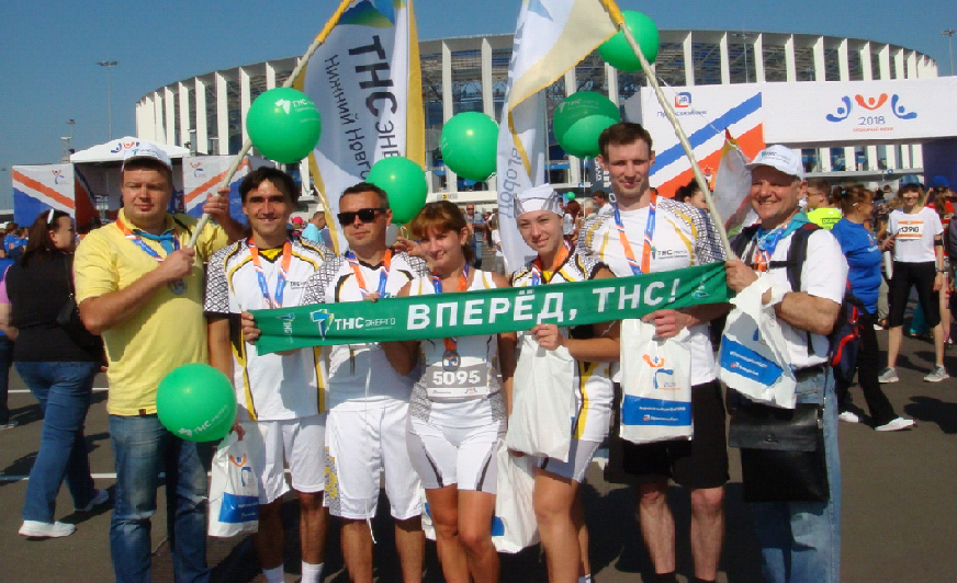 В корпоративной беговой эстафете участвовали команды крупнейших нижегородских компаний. "ТНС энерго НН" представляла команда из пяти участников: Ирина Журавлева, Виолетта Шмавонян, Дмитрий Усягин и Александр Сторожилов, Алексей Просвиров.
