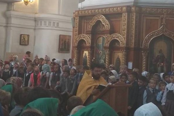 Учащиеся школ №77, 80, 81, 82 и 183 посетили Спасо-Преображенский Собор, воспитанники школы №79 - Храм в честь Всех Святых. Всего около одной тысячи человек попросили благословения в начале учебного года.
