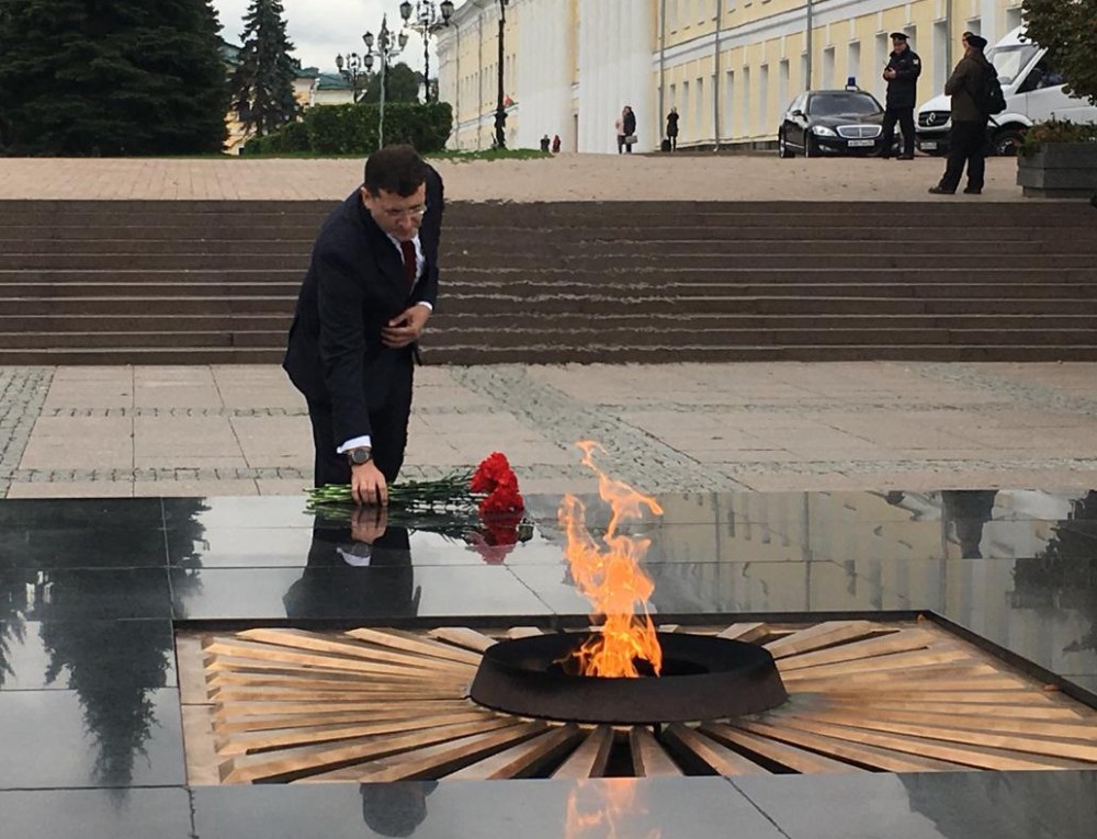 "Перед вступлением в должность губернатора считаю себя обязанным почтить память героев нижегородской земли", - подчеркнул Глеб Никитин.