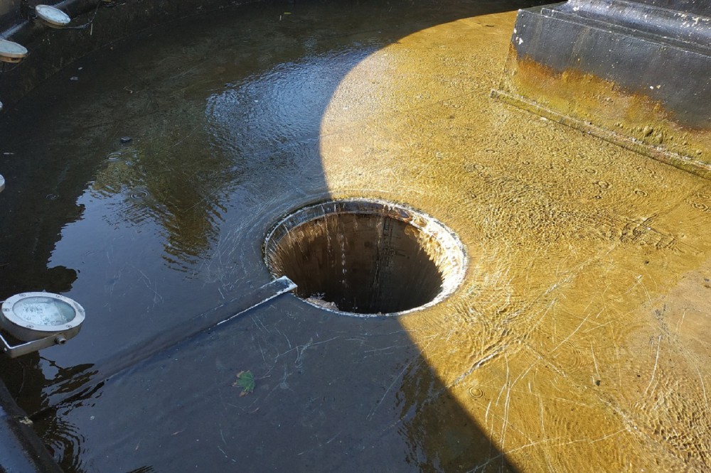 Работники водоканала отключили воду, насосное и электрическое оборудование фонтана, затем слили воду из чаши и промыли внешние и внутренние части фонтана. После всего на чашу фонтана устанавили покрытие, где в последствии будет размещен зимний световой короб.