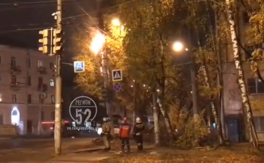 Обрыв и возгорание электропроводов произошло на ул. Бекетова в Нижнем Новгороде 23 октября 2018 года.