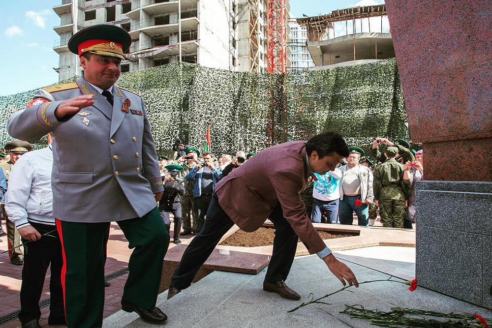 Депутат государственной Думы РФ, секретарь НРО партии "Единая Россия" Денис Москвин принял участие в открытии стелы "Пограничникам всех поколений посвящается…" на пл. Сенной 5 мая 2019 года.