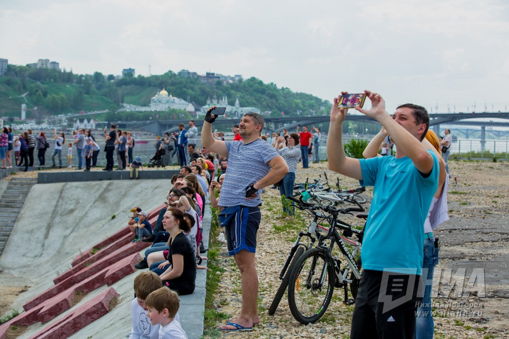 9 мая после парада Победы и прохождения колонны "Бессмертного полка" на площади Минина и Пожарского в Нижнем Новгороде истребитель МиГ-29 в течение нескольких минут исполнял фигуры высшего пилотажа над акваторией Волги.