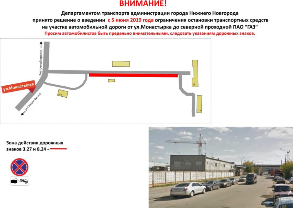 Парковку в районе ул.Монастырка запретят с 5 июня 2019 года в Нижнем Новгороде. Как сообщается на официальном сайте Центра организации дорожного движения, дептрансом принято решение о введении ограничения остановки транспорта на участке автодороги от улицы Монастырка до северной проходной ПАО "ГАЗ".