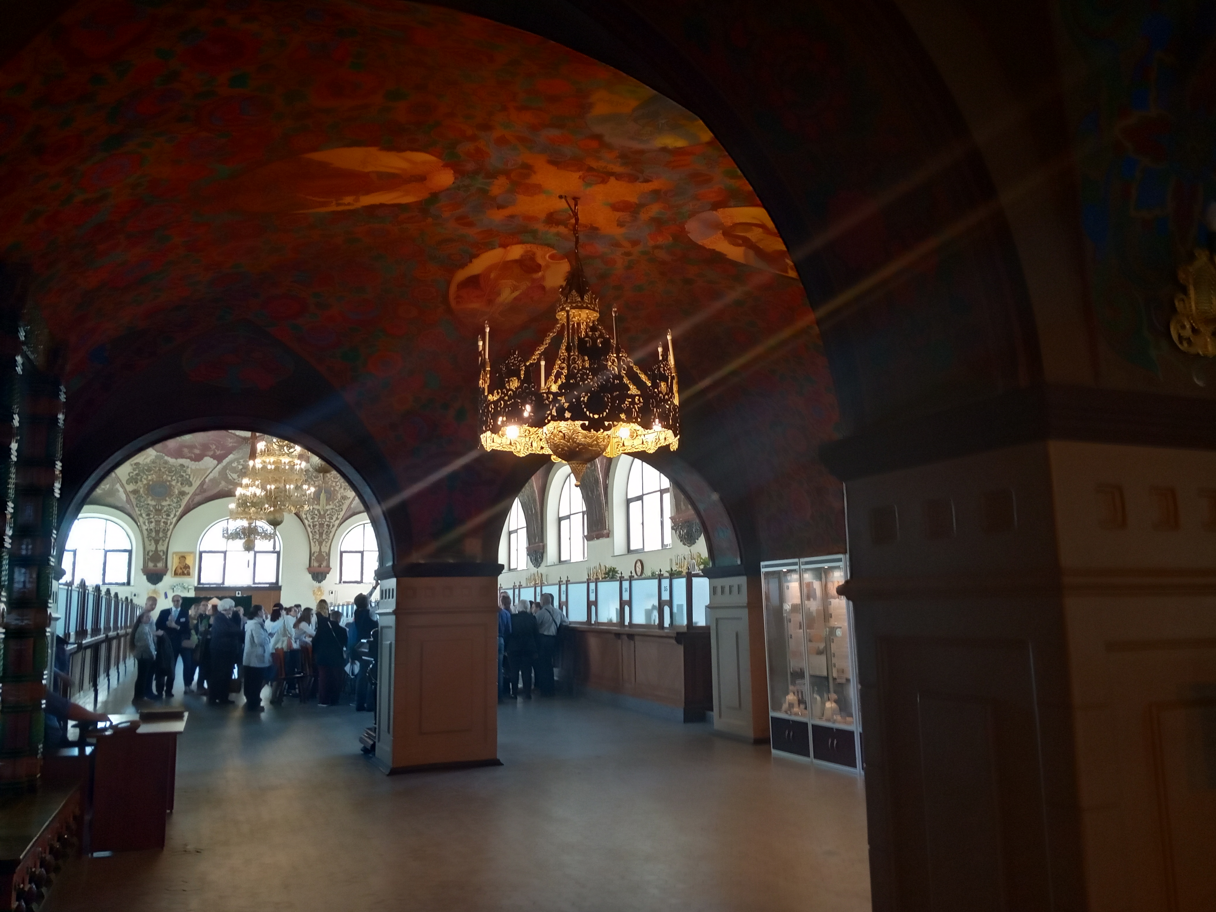 Самое большое помещение Центрального банка – главный операционный зал, которым он является до сих пор. Площадь помещения – 800 кв. м. Для этого зала была разработана специальная конструкция сводчатого потолка. Стальная сетка покрывалась специальным составом, и по ней минеральными красками наносились росписи по эскизам Ивана Билибина.