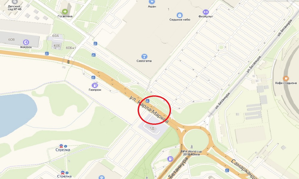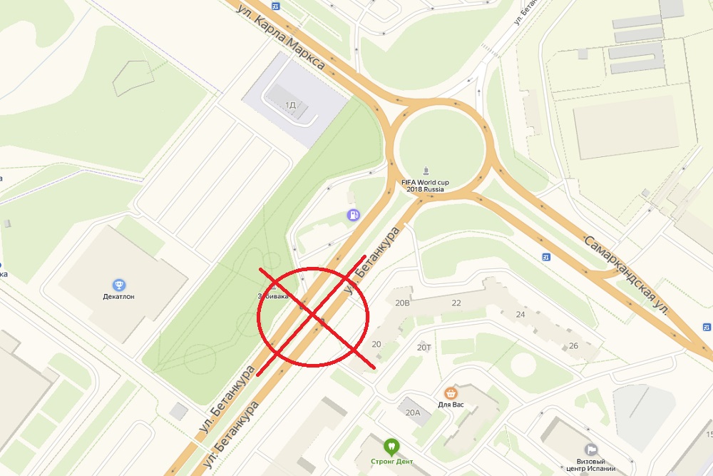 Переход расположен в районе дома №1 по улице Бетанкура (ТРЦ "Седьмое небо").
