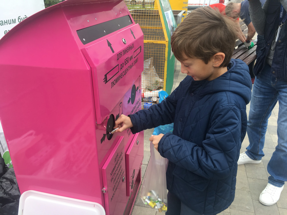 На акцию каждый мог принести с собой любые виды опасных отходов: от батарейки до автомобильного аккумулятора, а также пластиковые и стеклянные бутылки, макулатуру. Для них в сквере на улице Ефремова были установлены три контейнера: зеленый, желтый и малиновый. Зеленый предназначен для бытовых отходов, желтый – для мусора, который можно отправить на переработку, – это пластик и бумага. В малиновый контейнер нижегородцы могли выбросить опасные отходы, т.е. батарейки и лампы.