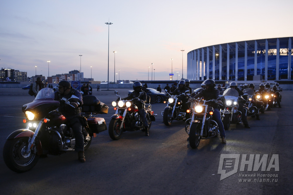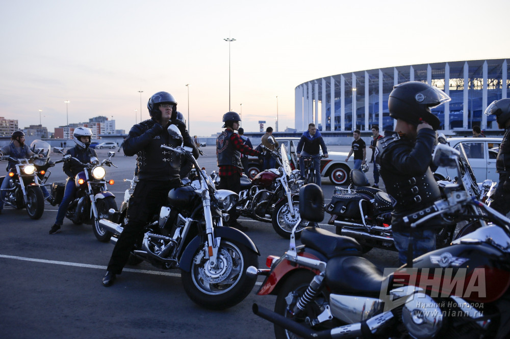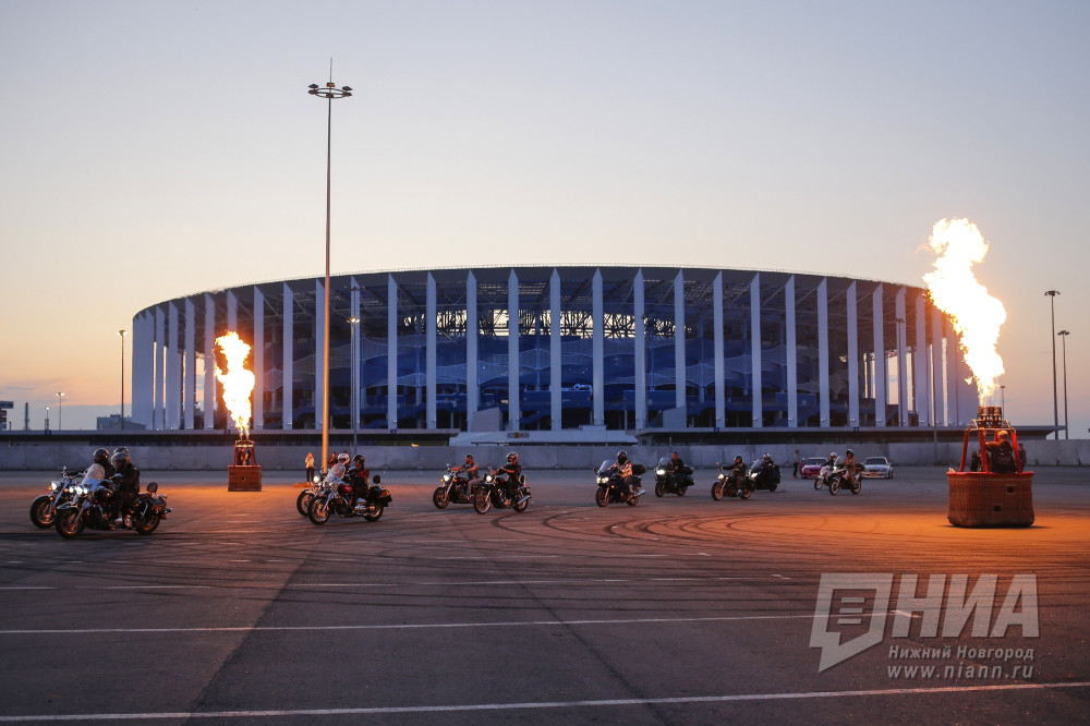 Байкеры и дрифт-пилоты устроили препати мотор-шоу перед стадионом "Нижний Новгород". Само шоу пройдет в День города. 17 августа с 12:00 до 19:30 все желающие смогут увидеть гонки на мотоциклах и соревнования по дрифтингу. Фото Анастасии Макарычевой.