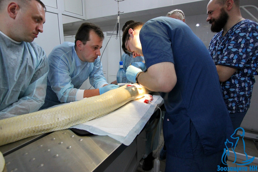 Нижегородские хирурги прооперировали питона. Об этом сообщается в группе ветеринарного госпиталя "Зоозащита-НН" в социальной сети ВКонтакте.
