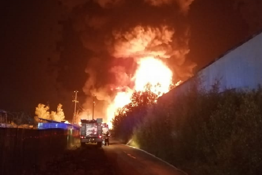 Сообщение о пожаре в расположенном на территории промзоны ангаре, где находилось примерно 500 тонн ГСМ, поступило вечером 10 сентября. Сотрудники МЧС выехали на место происшествия в 18:20.