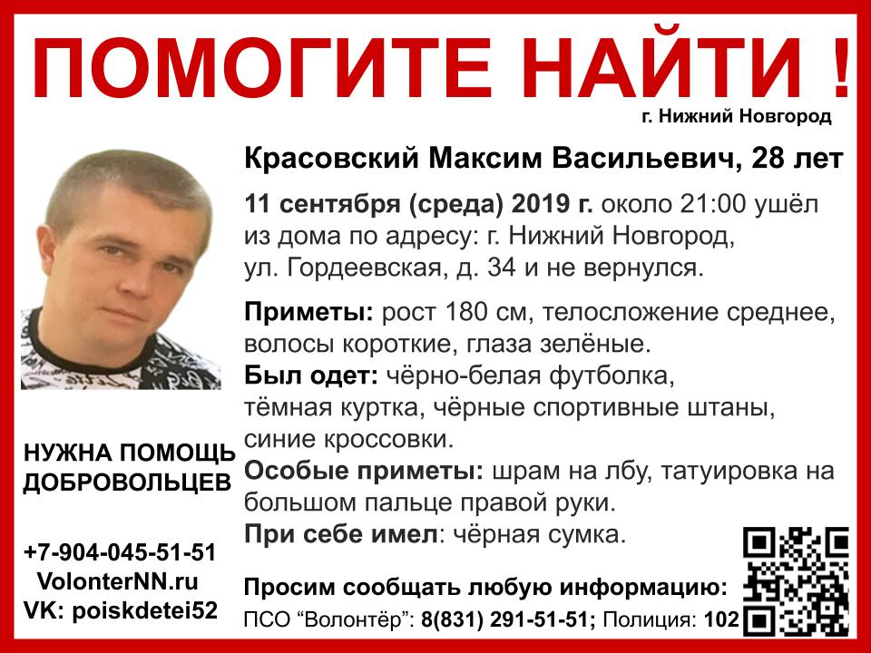 28-летний Максим Красовский пропал в Нижнем Новгороде. Об этом сообщает ПСО "Волонтер".