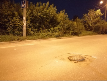 "Есть проблемный участок на улице Героя Попова. Прошу посодействовать в устранении проблемы. Ямы находятся перед поворотом после пешеходного перехода. Там провалился люк", - написал он.