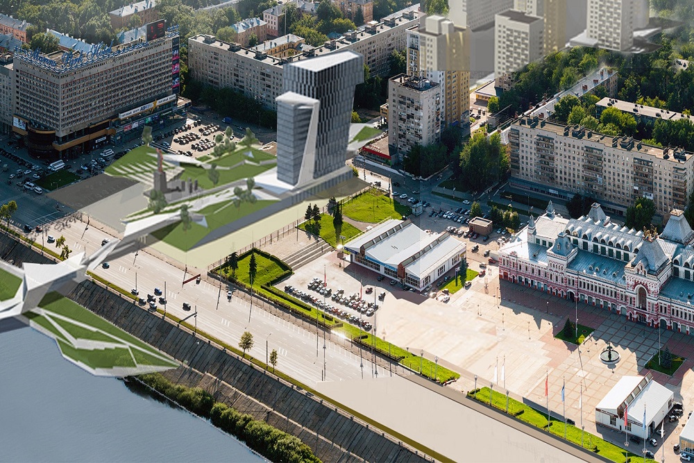 Ранее сообщалось, что нижегородские архитекторы предлагали накрыть площадь Ленина зеленым холмом на стилобате, поднятом на один этаж. По их мнению, пространство скроет загруженные машинами дороги на улицах Советской и Совнаркомовской, и "разномастные магазины, примыкающие к зданию гостиницы". Рядом с Ярмаркой планируется разместить большое стеклянное здание многофункционального комплекса, который продолжит ряд одиночных высотных зданий по бульвару Мира. В нем, по проекту, будут коммерческие помещения и офисы.