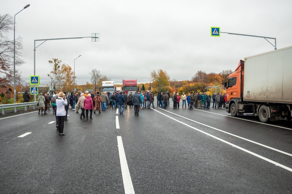 Жители вышли на протест после того, как ФКУ УПРДОР Москва - Нижний Новгород проинформировал их о том, что на участке трассы М-7 "Волга" с 510 по 520 км в Нижегородской области закроют четыре левых поворота.