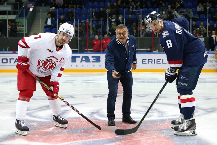 Началу матча предшествовала церемония торжественного вбрасывания в исполнении Президента международной федерации хоккея на льду, члена международного олимпийского комитета Рене Фазеля. Почетный гость прибыл в наш город в рамках форума "Россия - спортивная держава" и не мог пройти мимо знакомства с нижегородской хоккейной "кухней".