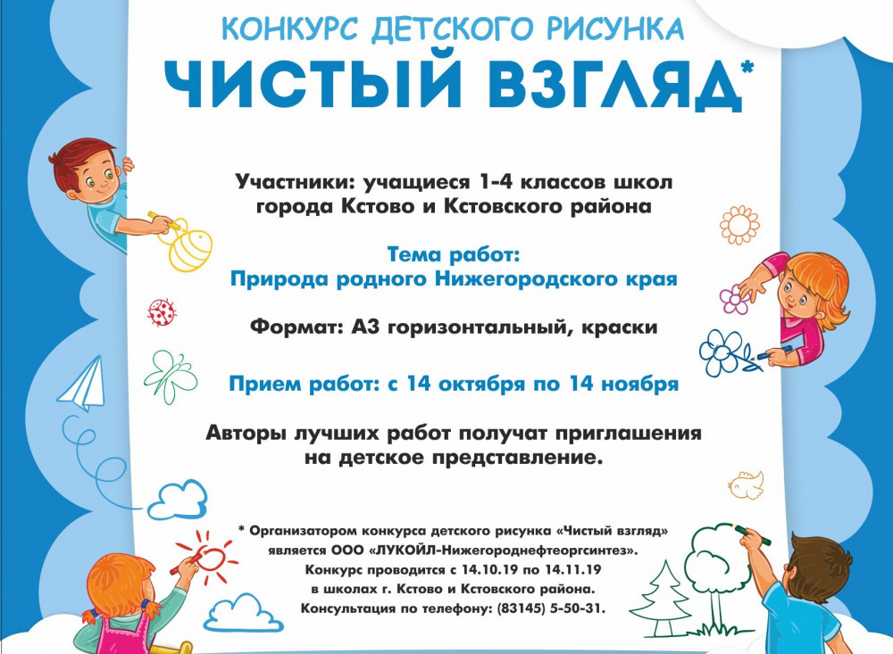 "ЛУКОЙЛ" объявил старт конкурсу детского рисунка на экологическую тематику "Чистый взгляд" в Кстове и Кстовском районе Нижегородской области. Об этом сообщает Центр общественных связей ООО "ЛУКОЙЛ-Нижегороднефтеоргсинтез".
