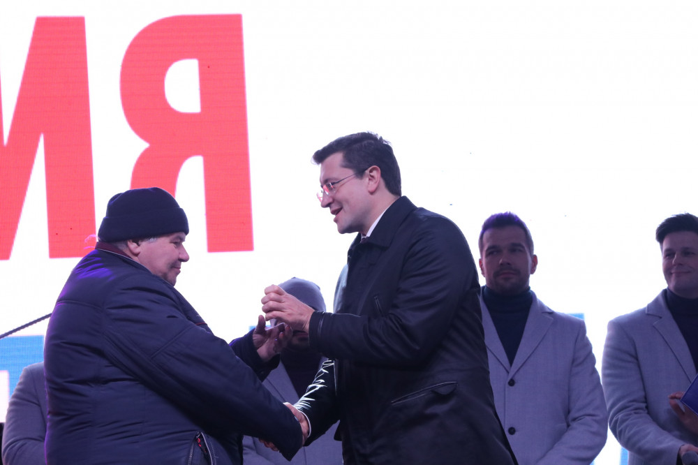 Двум нижегородцам вручили премию Минина и Пожарского в День народного единства на главной площади Нижнего Новгорода. В церемонии приняли участие губернатор Нижегородской области Глеб Никитин, председатель регионального Законодательного собрания Евгений Лебедев и глава города Владимир Панов.