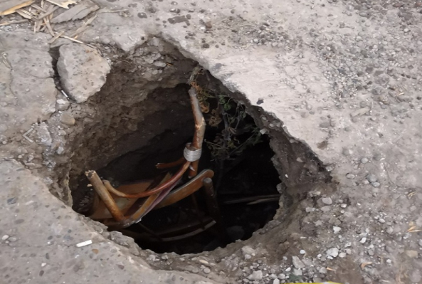 Нижегородка написала, что рядом с остановкой общественного транспорта на перекрестке ул. Красноуральской и ул. Спутник в Автозаводском районе в асфальте образовался провал "диаметром с покрышку колеса и глубиной 1,5 - 2 метра".