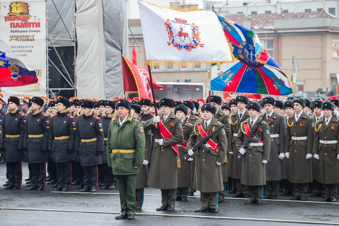 Парад Памяти проводится ежегодно с 2011 года по инициативе Самарского регионального отделения партии "Единая Россия". Он посвящен параду, прошедшему 7 ноября 1941 года, когда части Красной Армии из Куйбышева отправлялись на фронт.