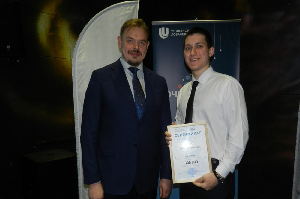 Сертификат победителя и самый большой грант в размере 300 тысяч рублей Сергею Галкину вручил 12 ноября министр образования, науки и молодежной политики Нижегородской области Сергей Злобин.